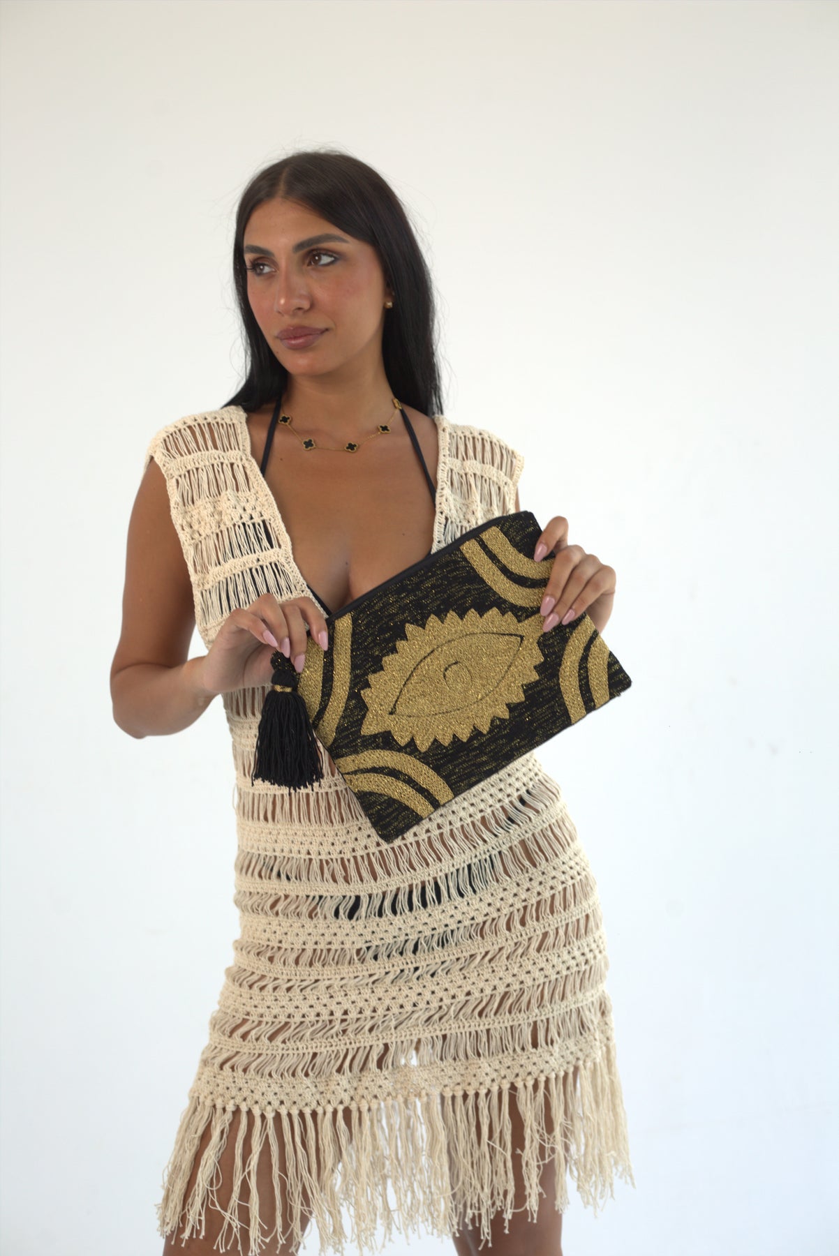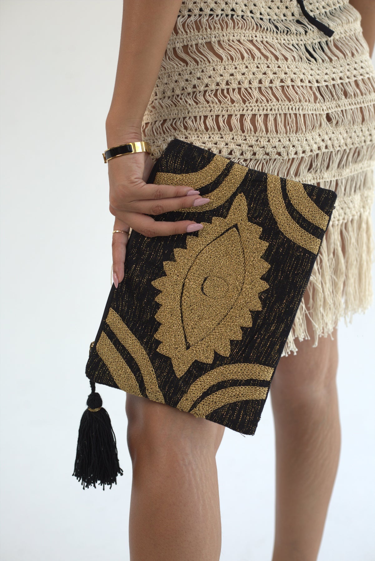 "Golden Gaze" - Hand-Embroidered Clutch