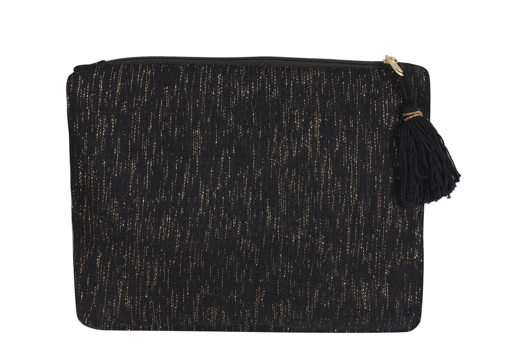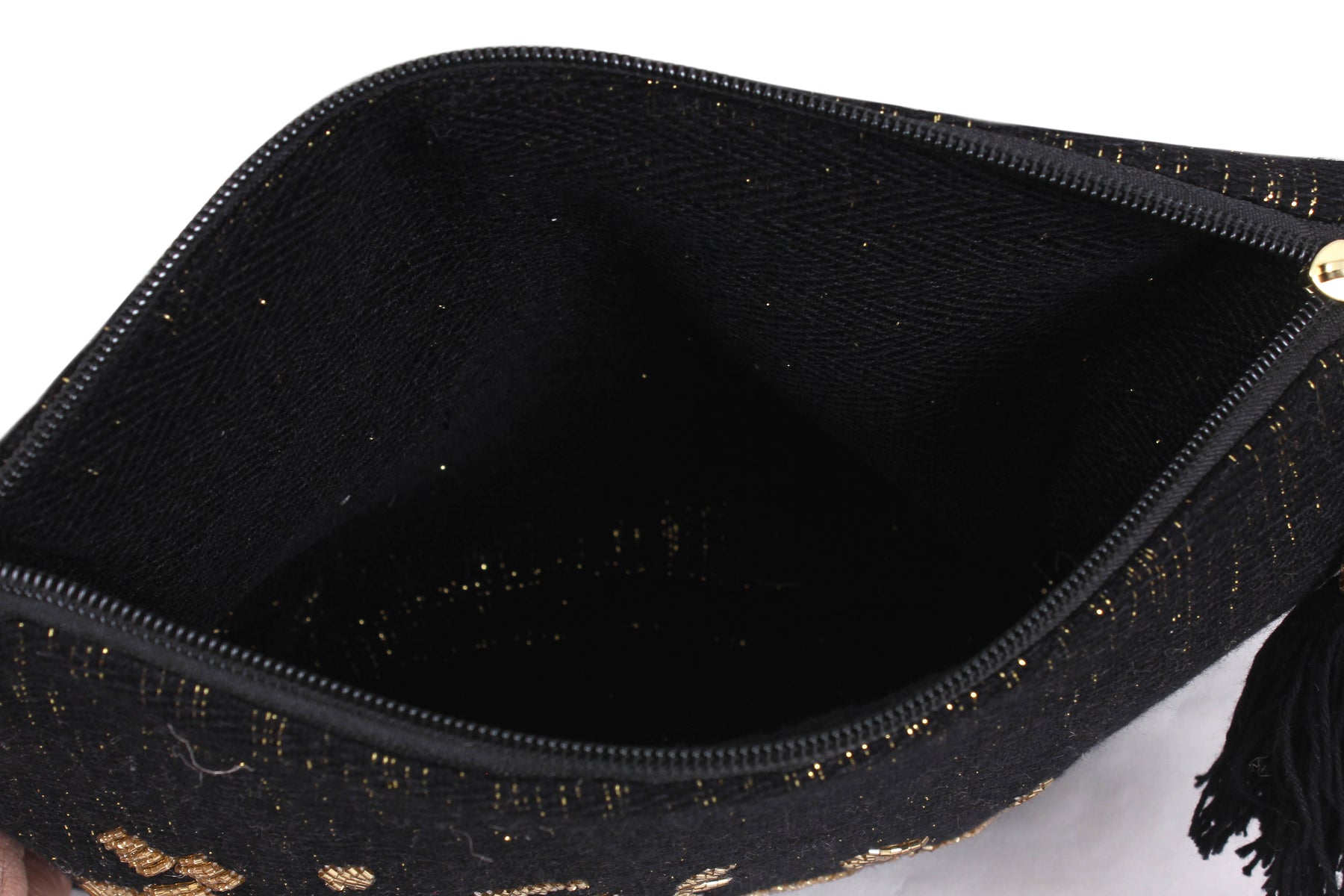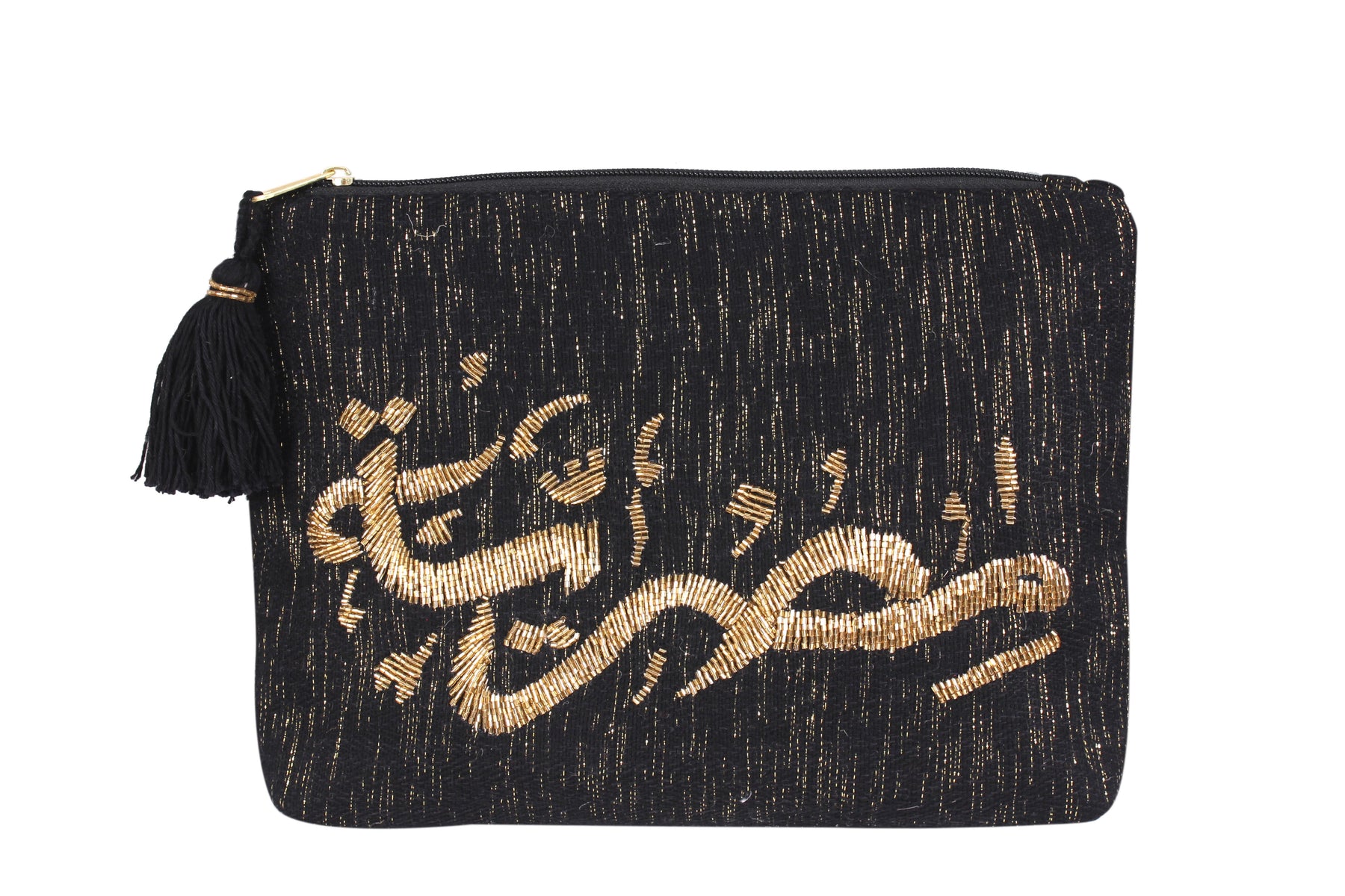 "Misriya" - Hand-Beaded Linen Pouch in Black