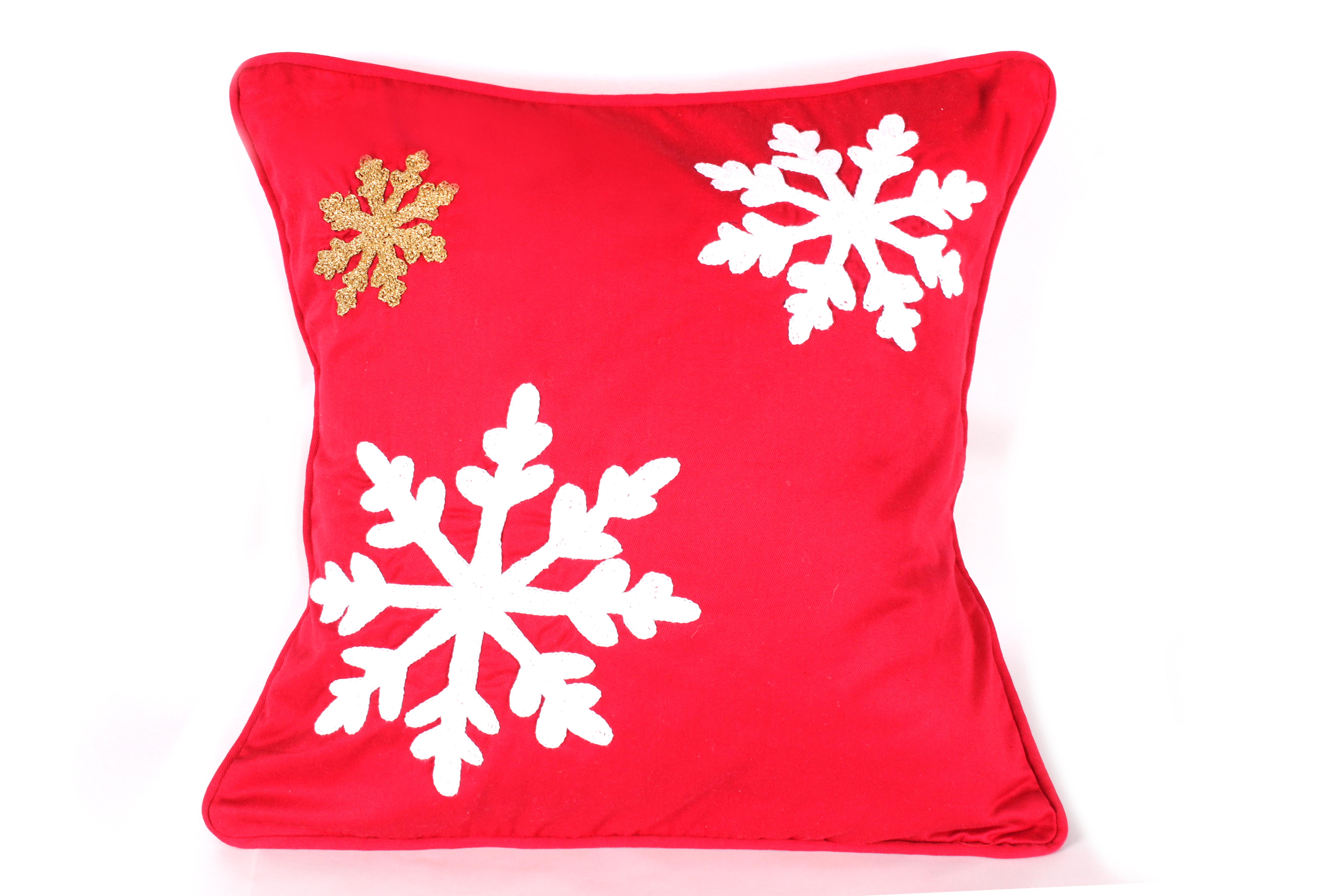 Hand-Embroidered Snowflakes Cushion with a touch of Gold