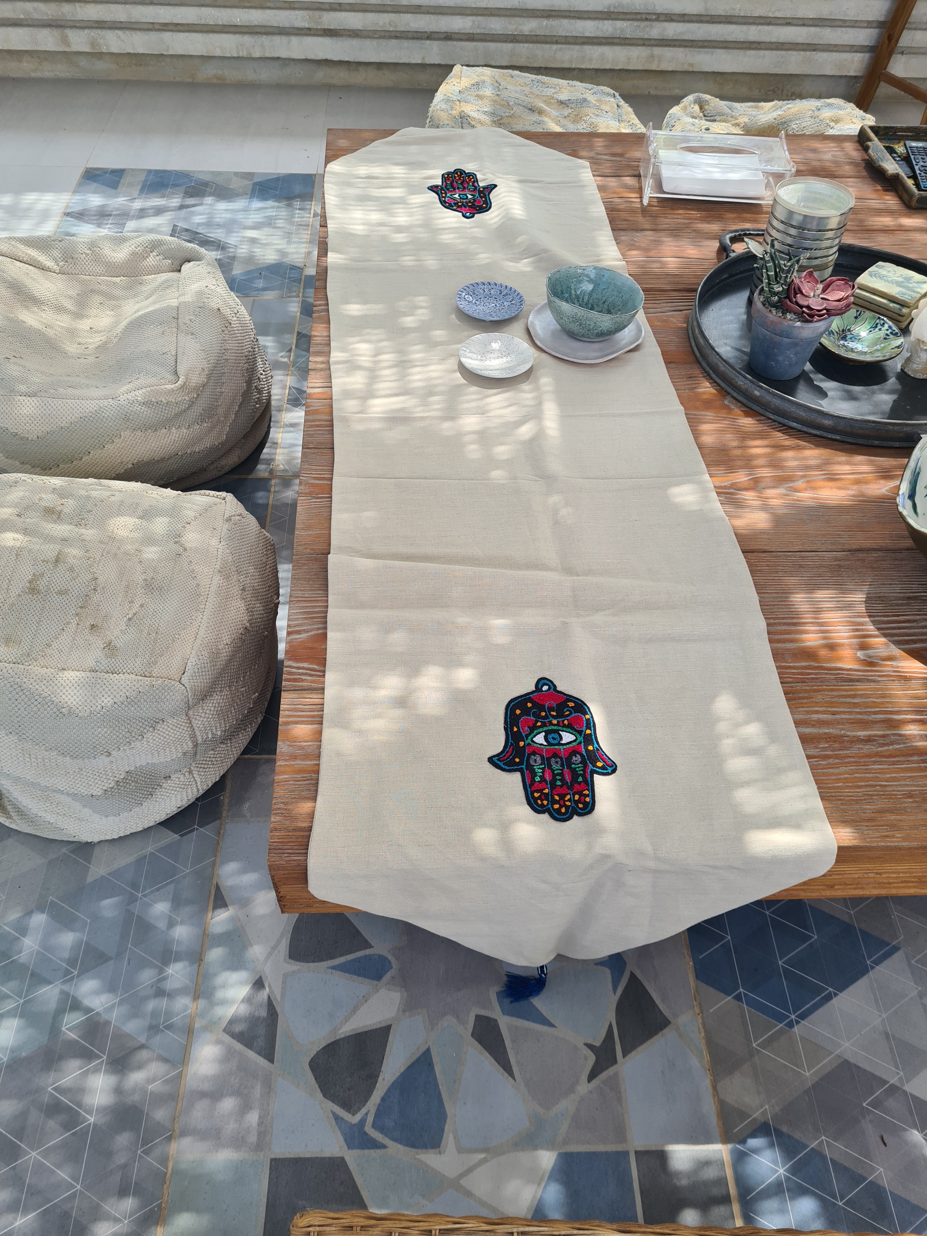 رانر كتان كف تطريز يدوي(180*50cm)