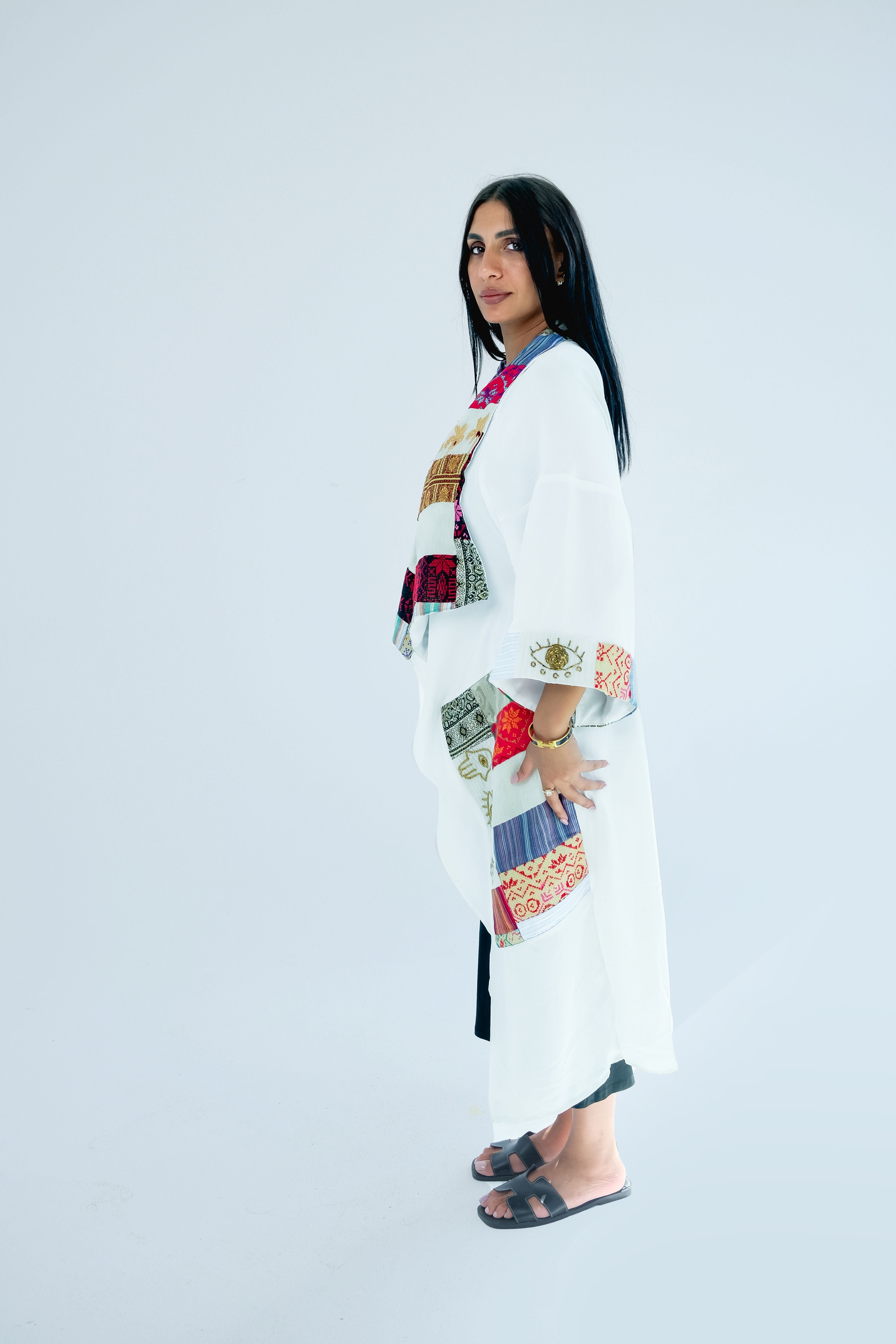 Laid-Back Luxury: The Patchwork-Infused Kimono in ًWhite