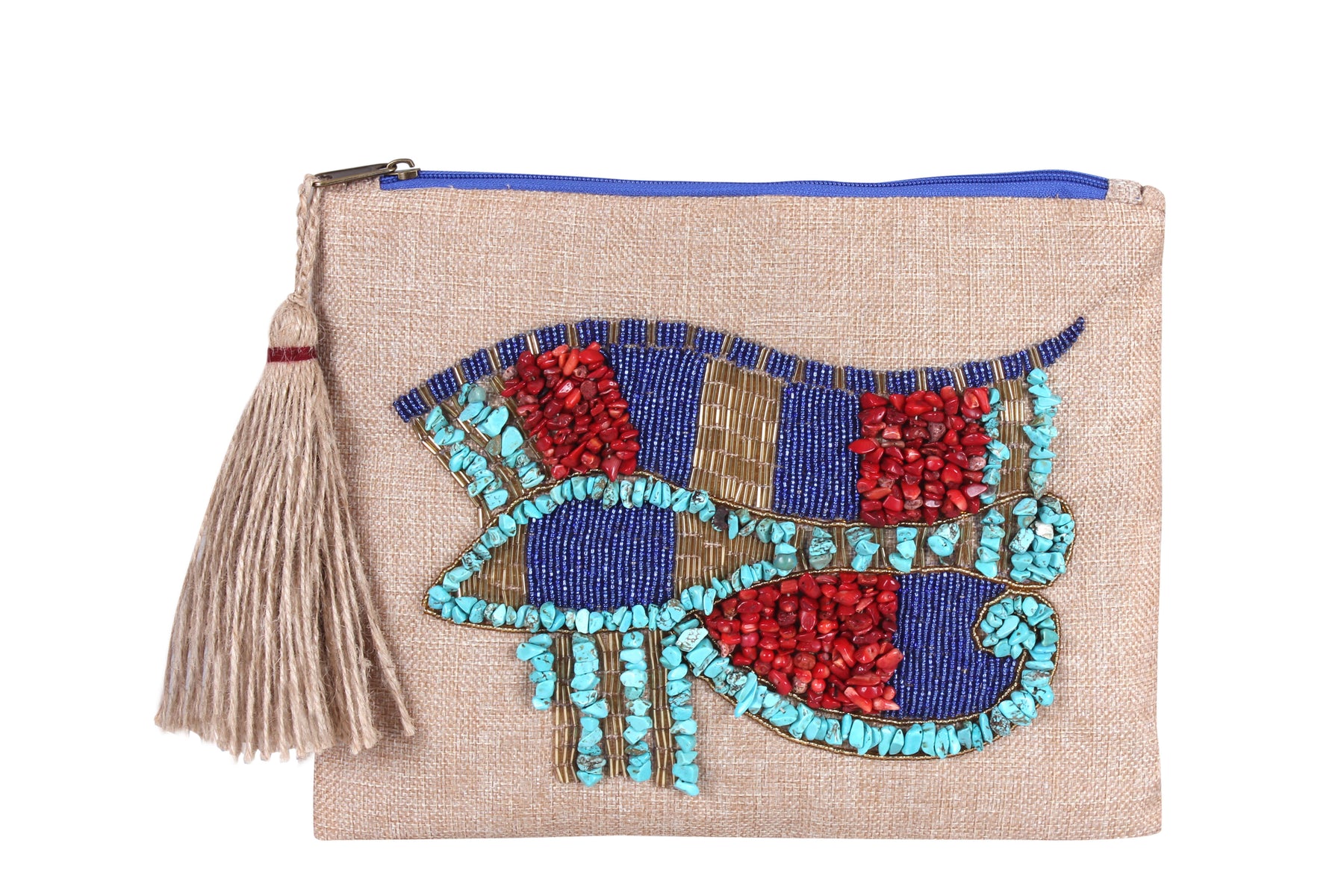 Glimmering Guardian: The Hand-Beaded Eye of Ra with Semi-Precious Stones Linen Clutch