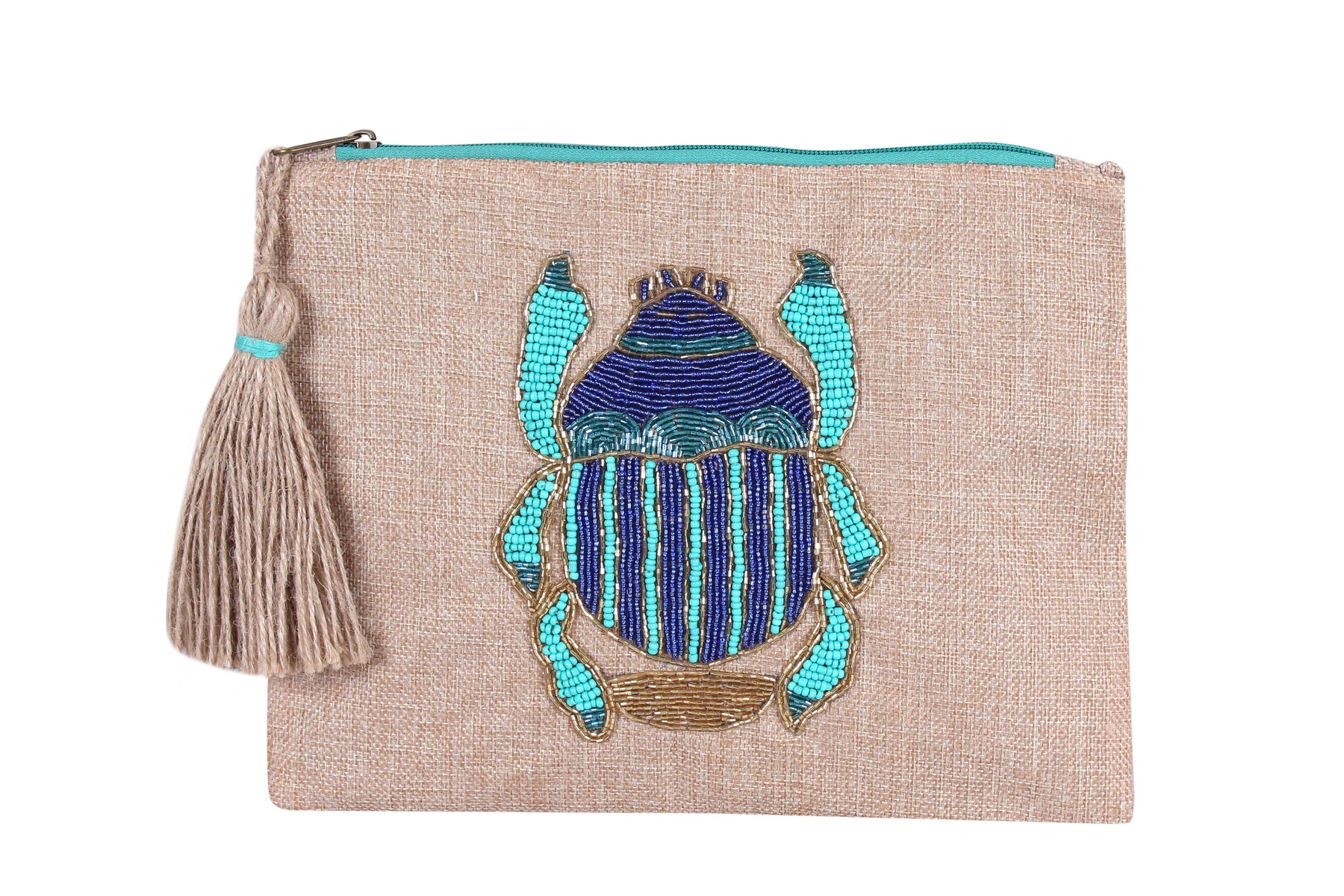 The Radiant Blue Scarab: Hand-Beaded Clutch