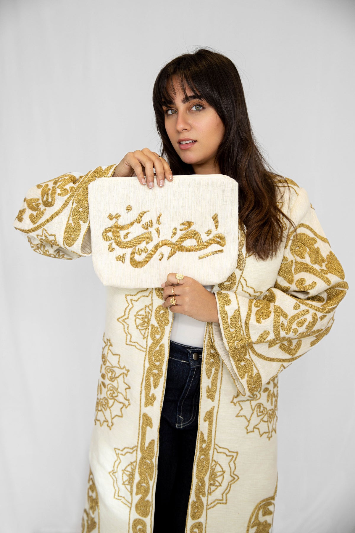 "Misriya" - Hand-Beaded Linen Pouch in White