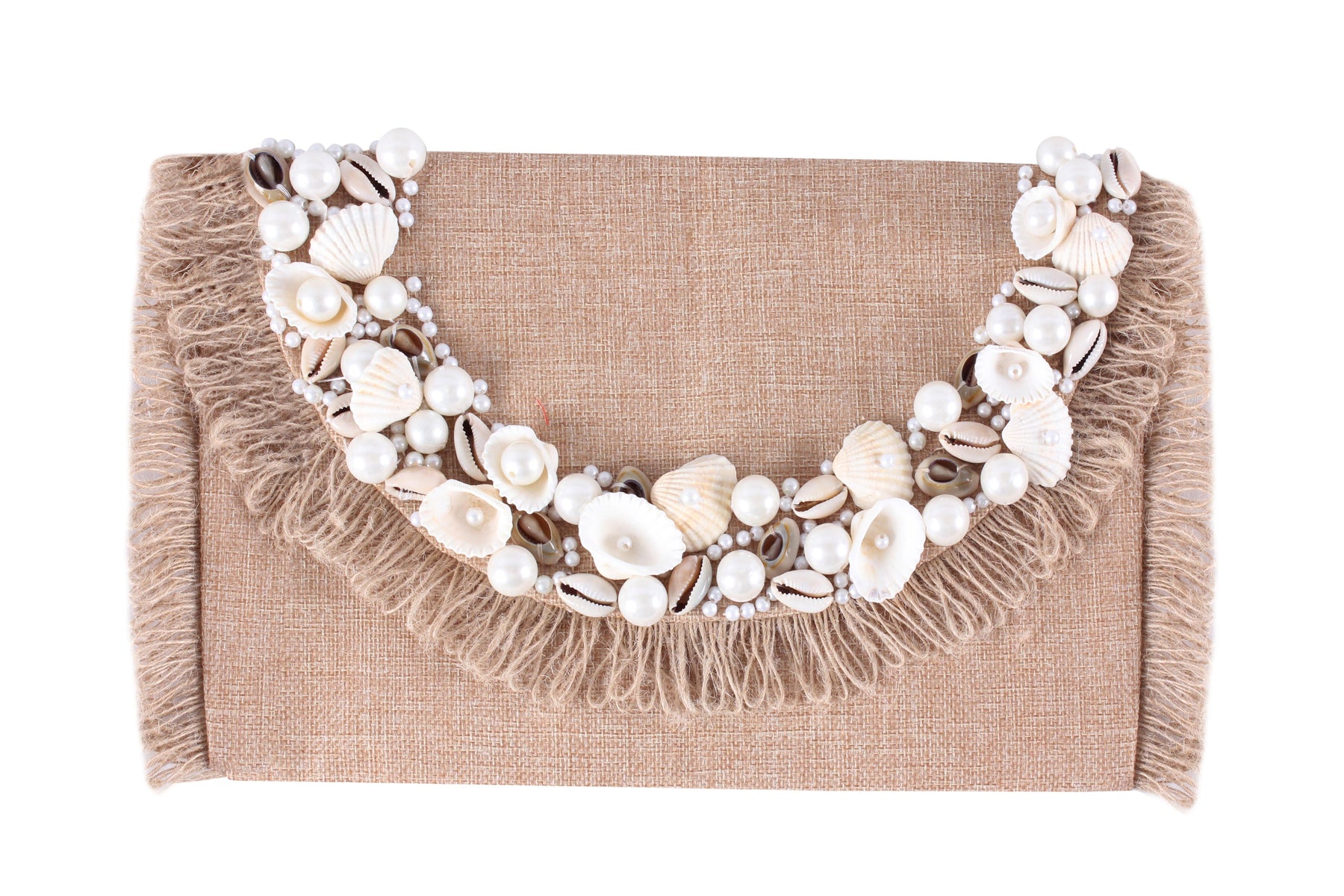 Oceanic Opulence: Shell and Pearl Envelope Linen Clutch
