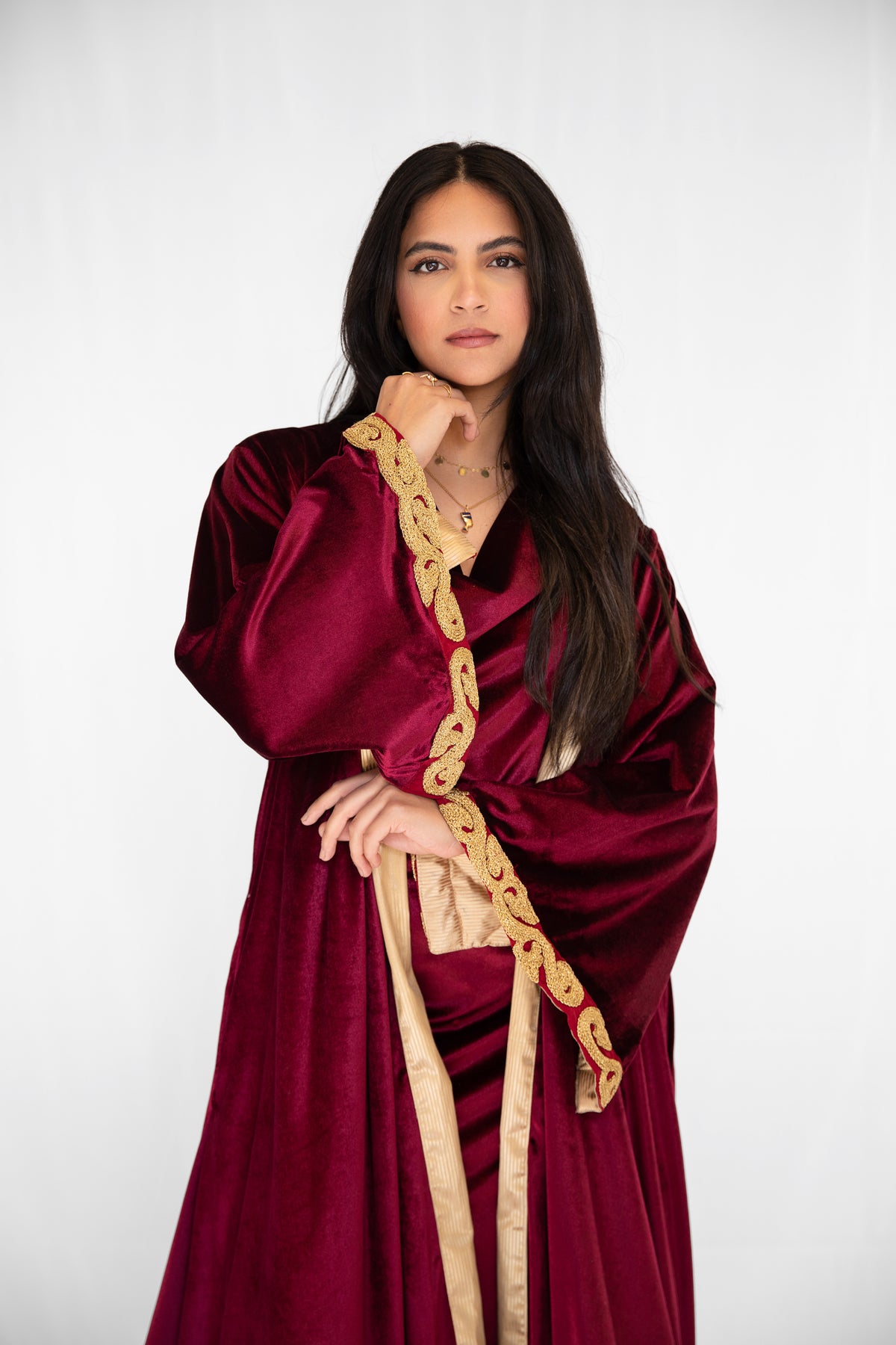 "Golden Hamsa Kaftan" in Burgundy