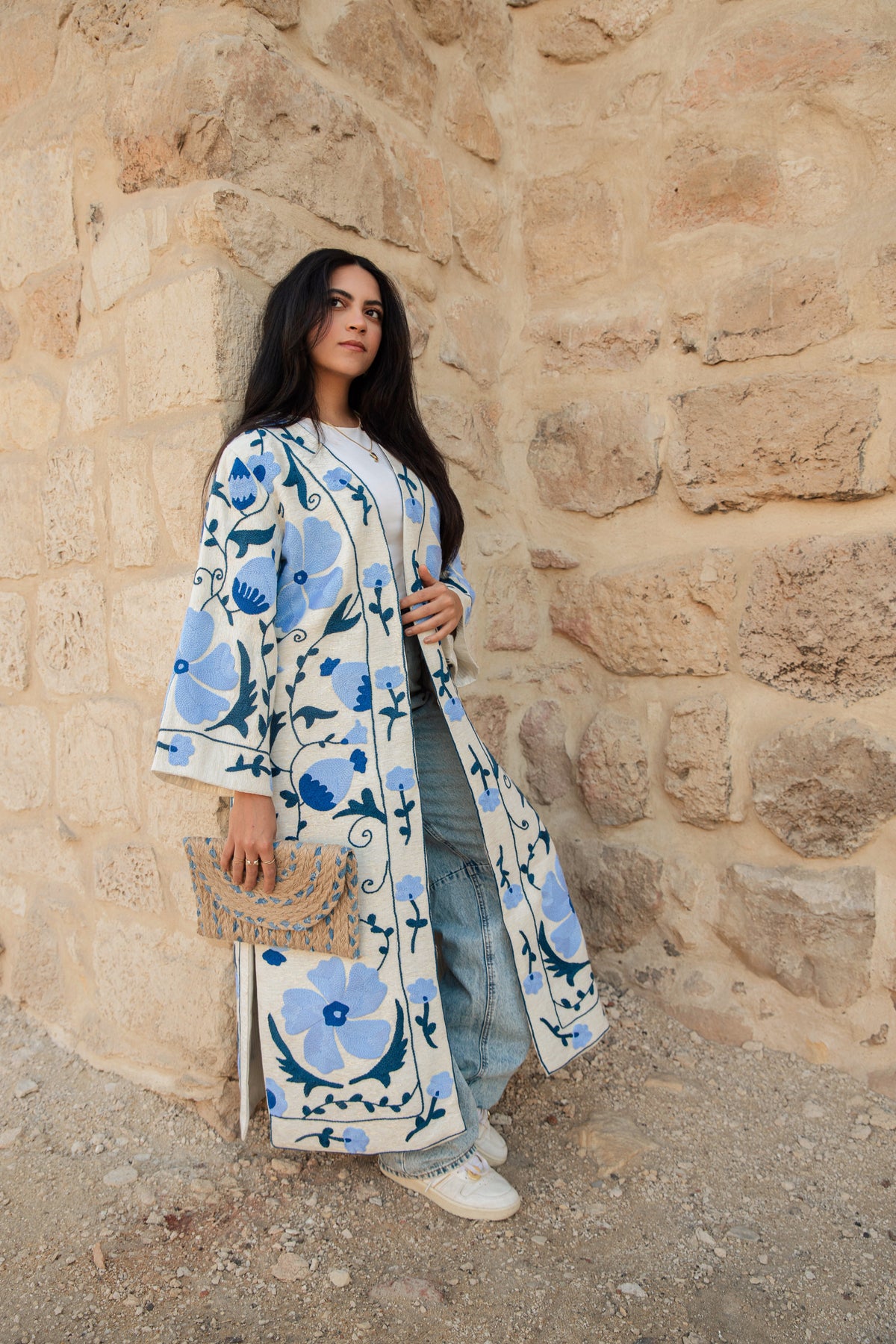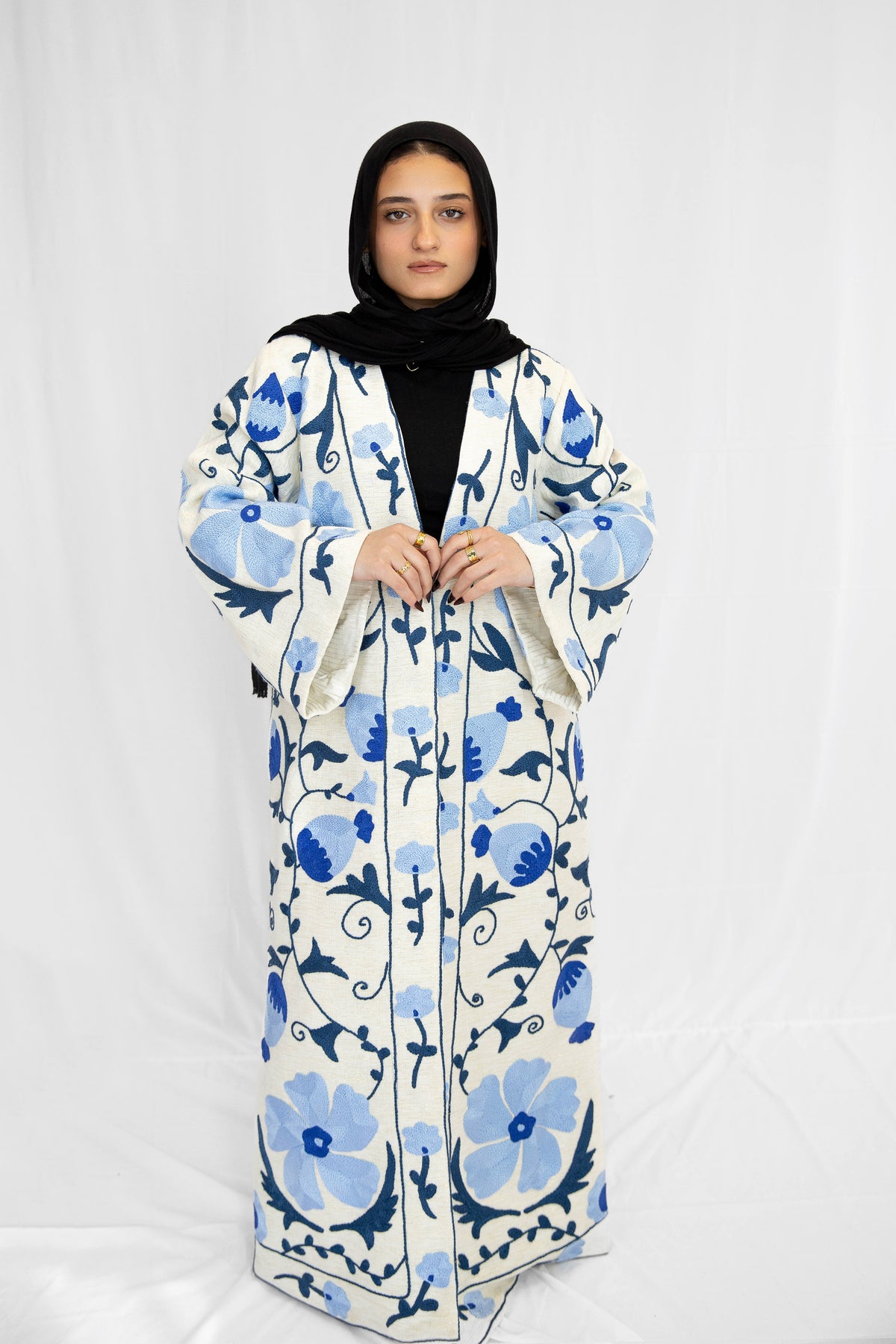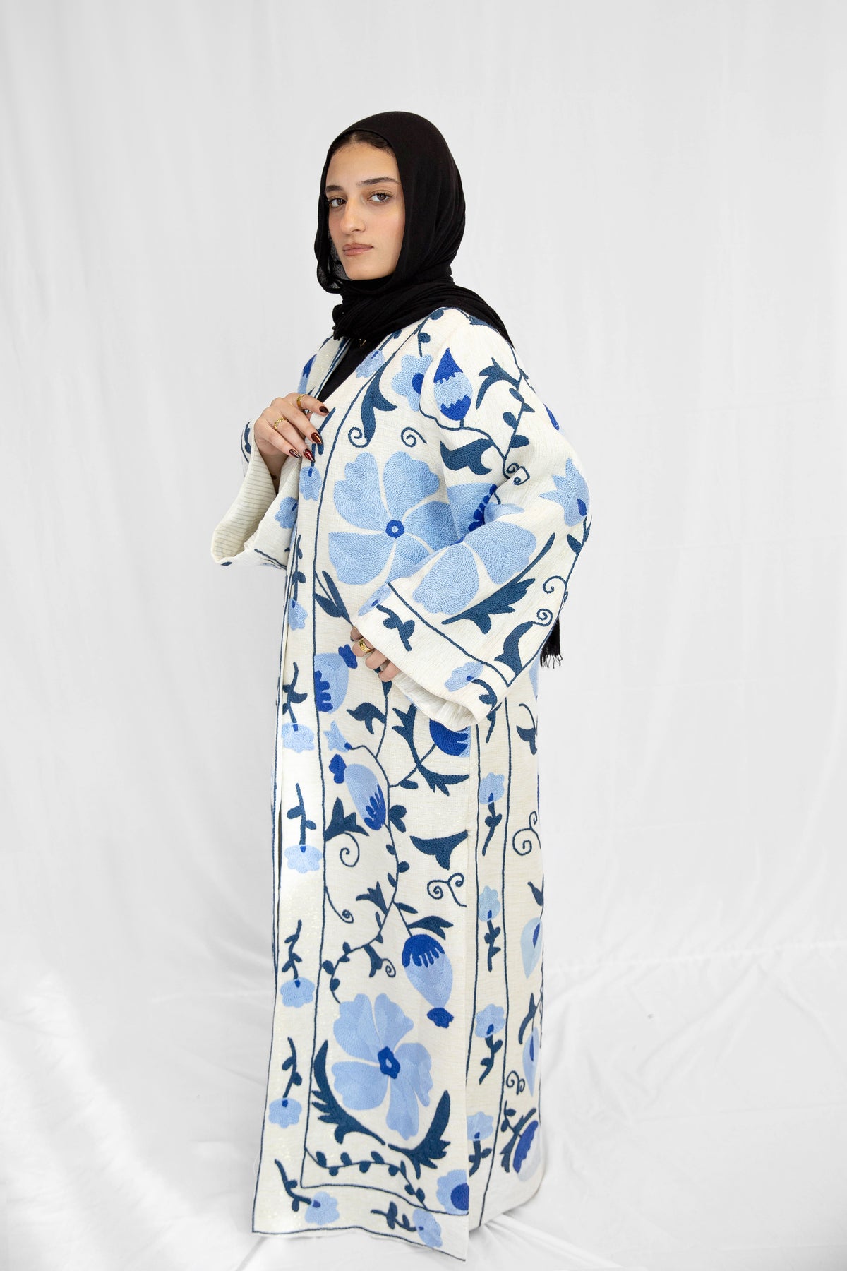 Blue Blossom Hand-Embroidered Kimono