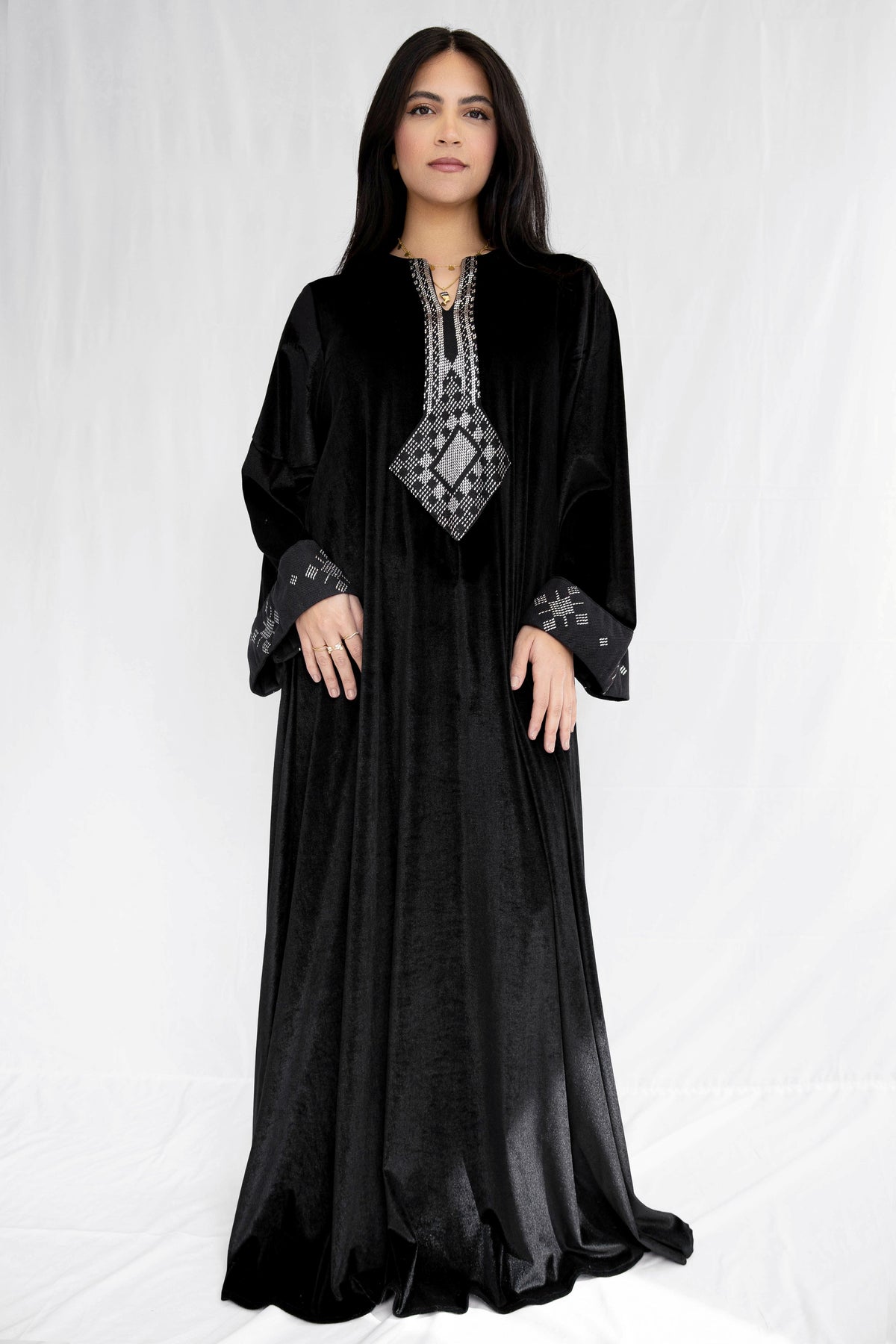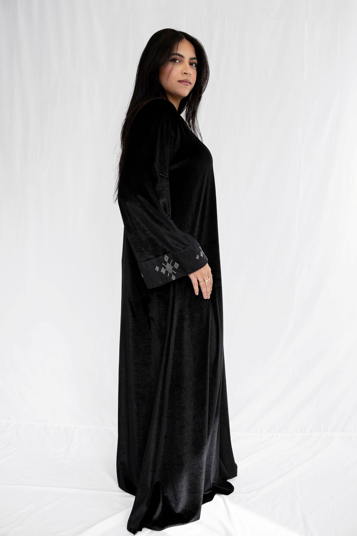 "Tally Crest Velvet Abaya"