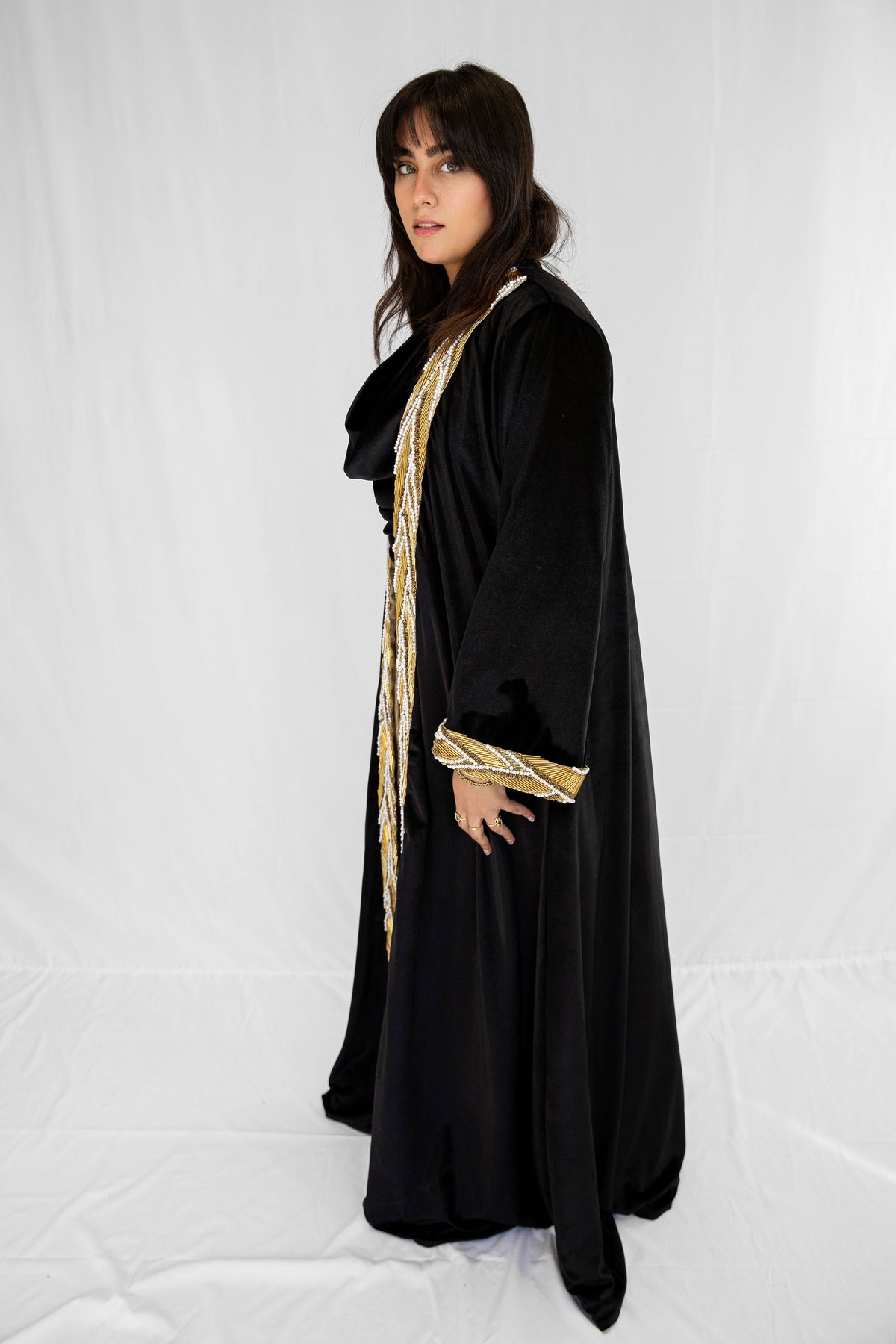 "The Hand-Beaded Crown Velvet Kaftan" in Black