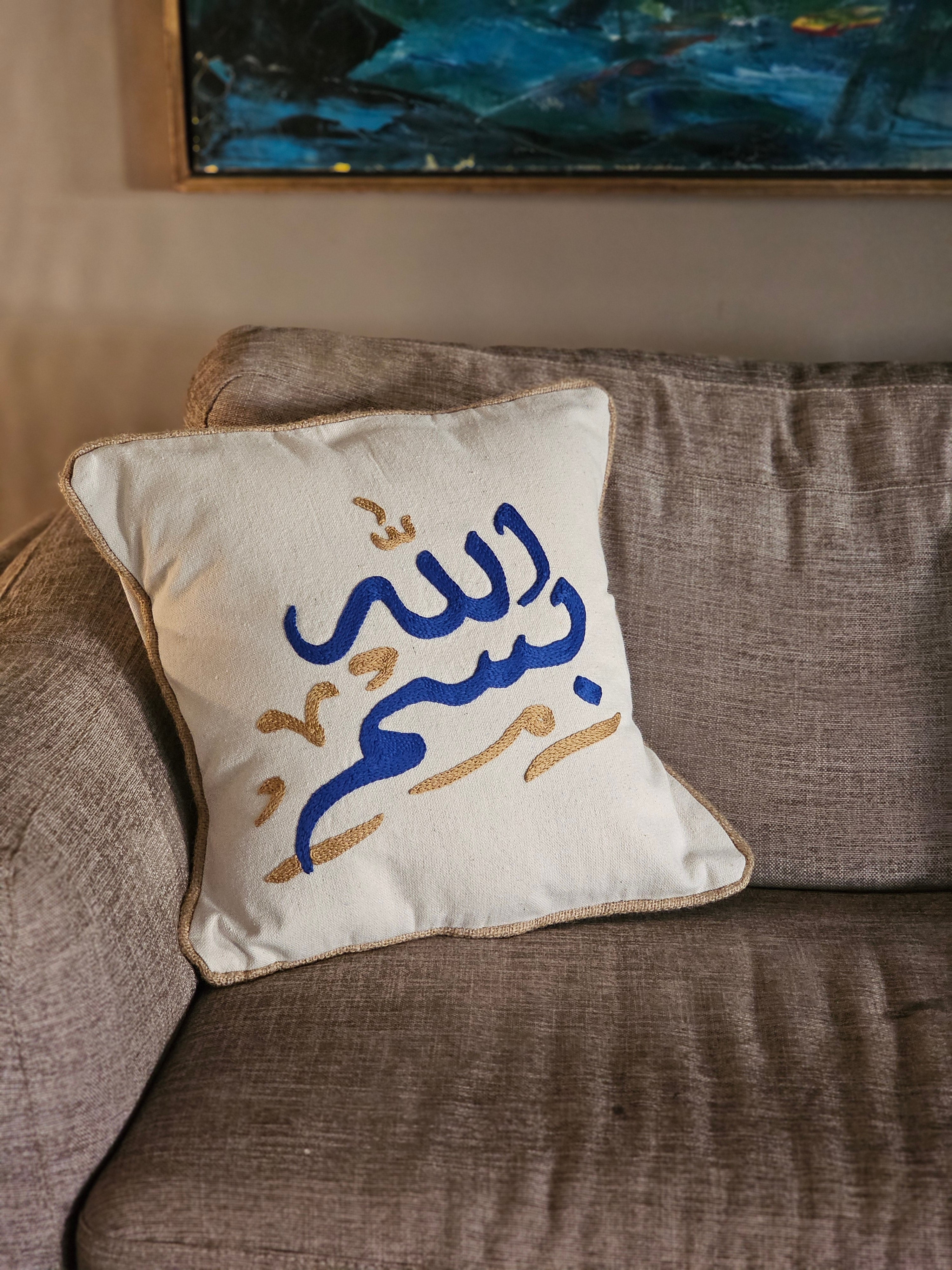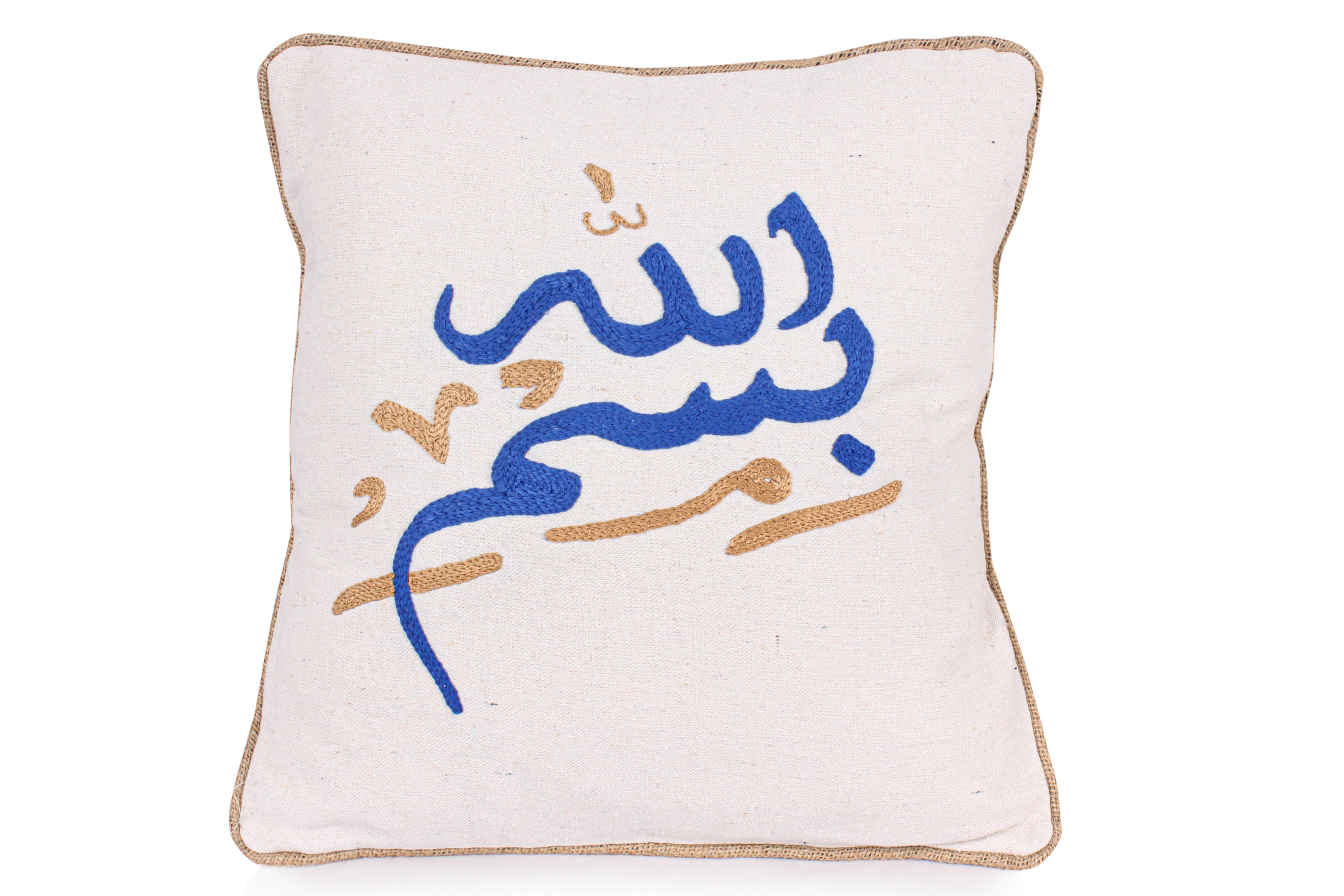 "Bismillah" - Hand-Embroidered Cushion with Arabic Calligraphy
