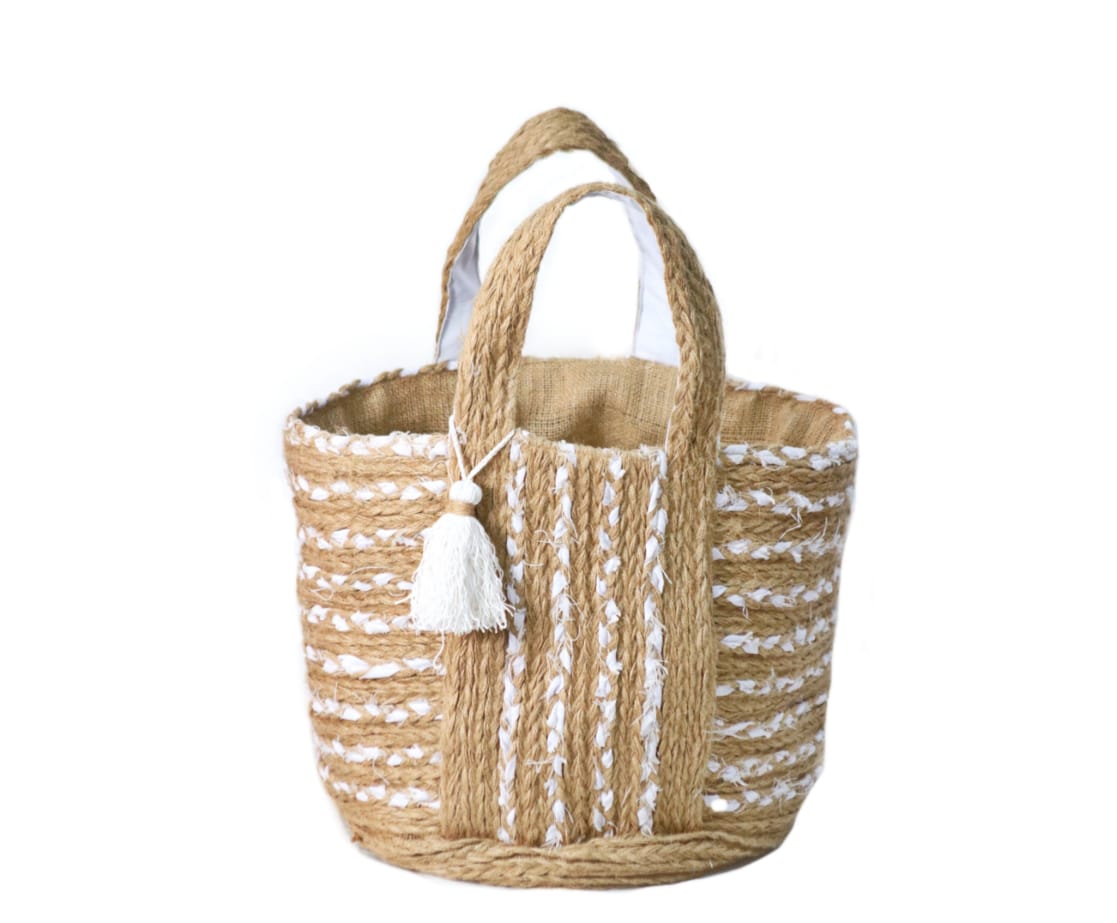 Burlap Beauty: The Perfect Beach Tote in White (Large)