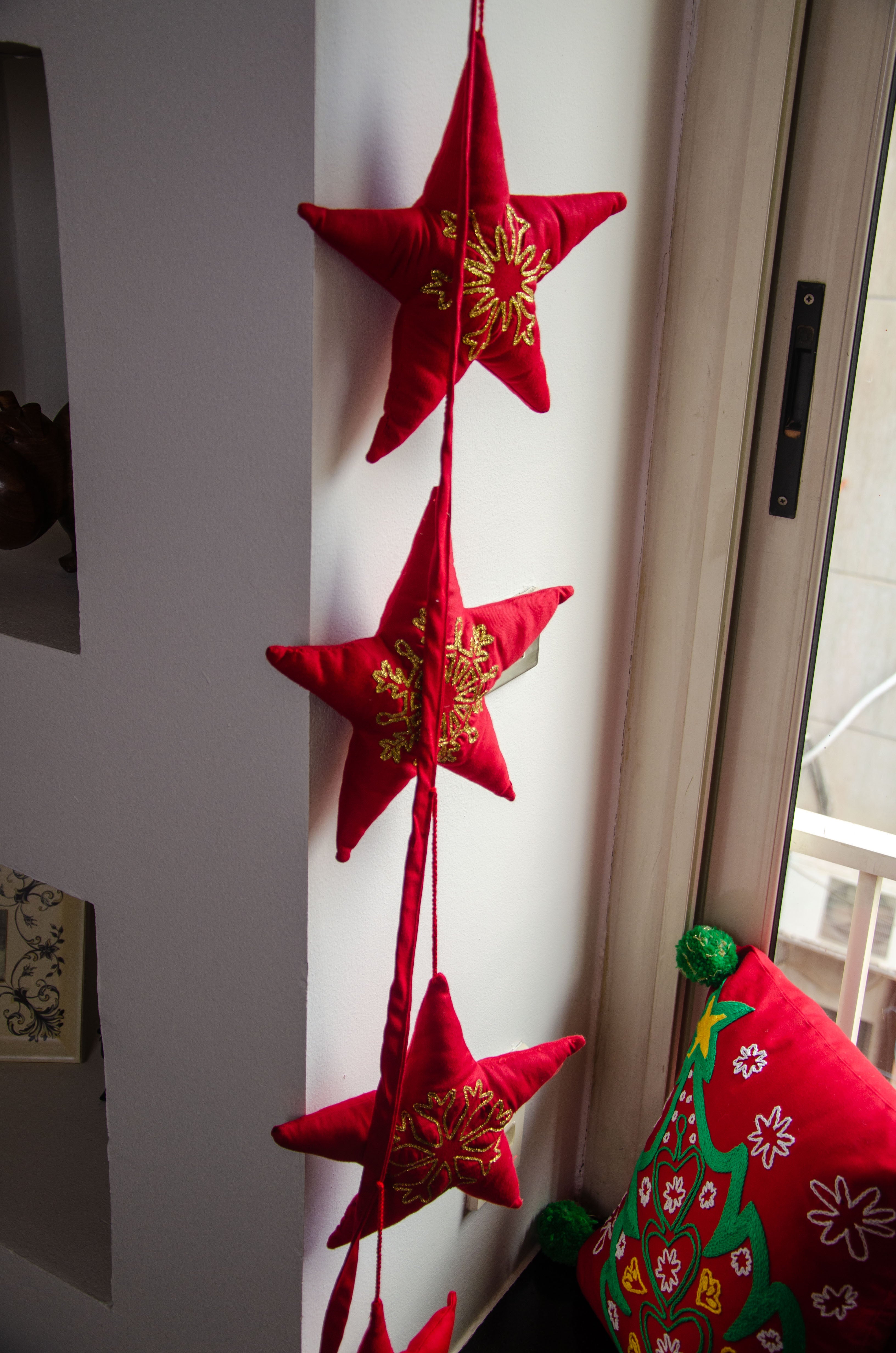 Starry Elegance: Dangling Banner with Embroidered Stars
