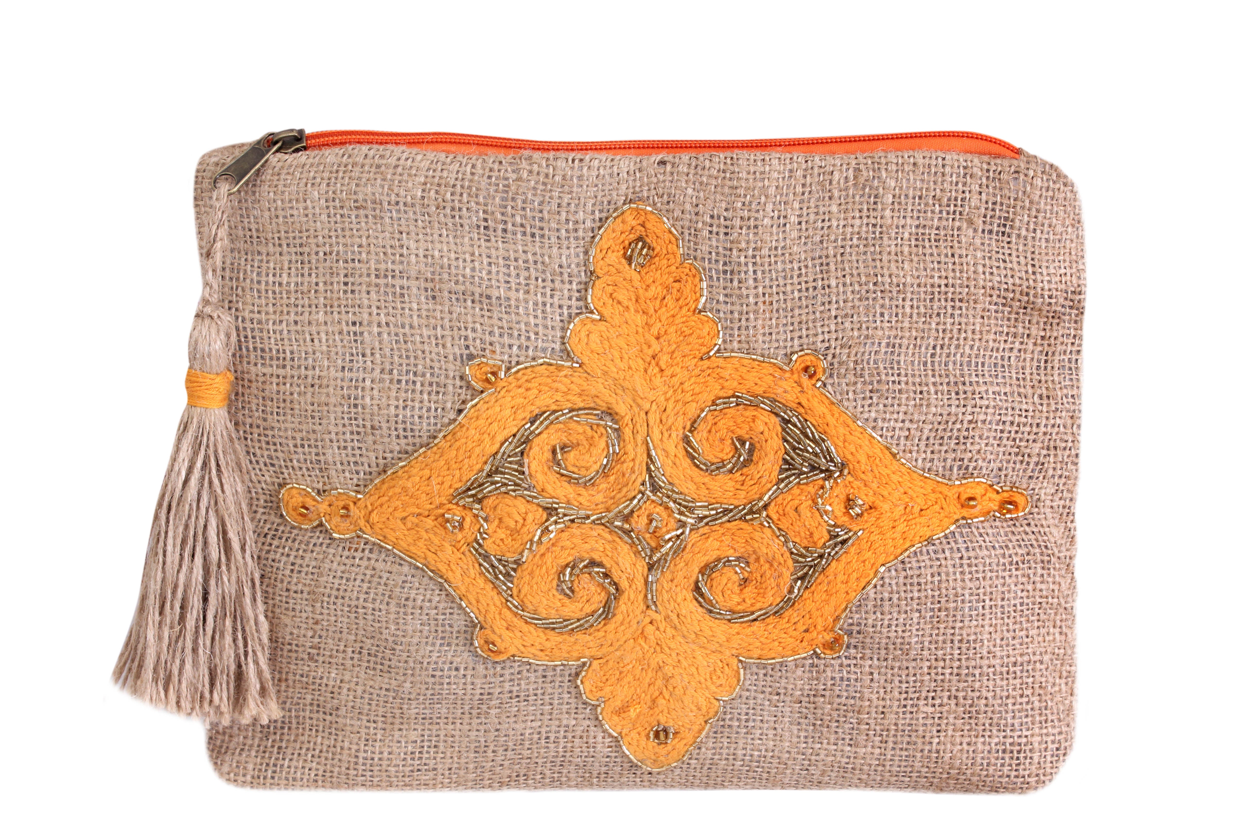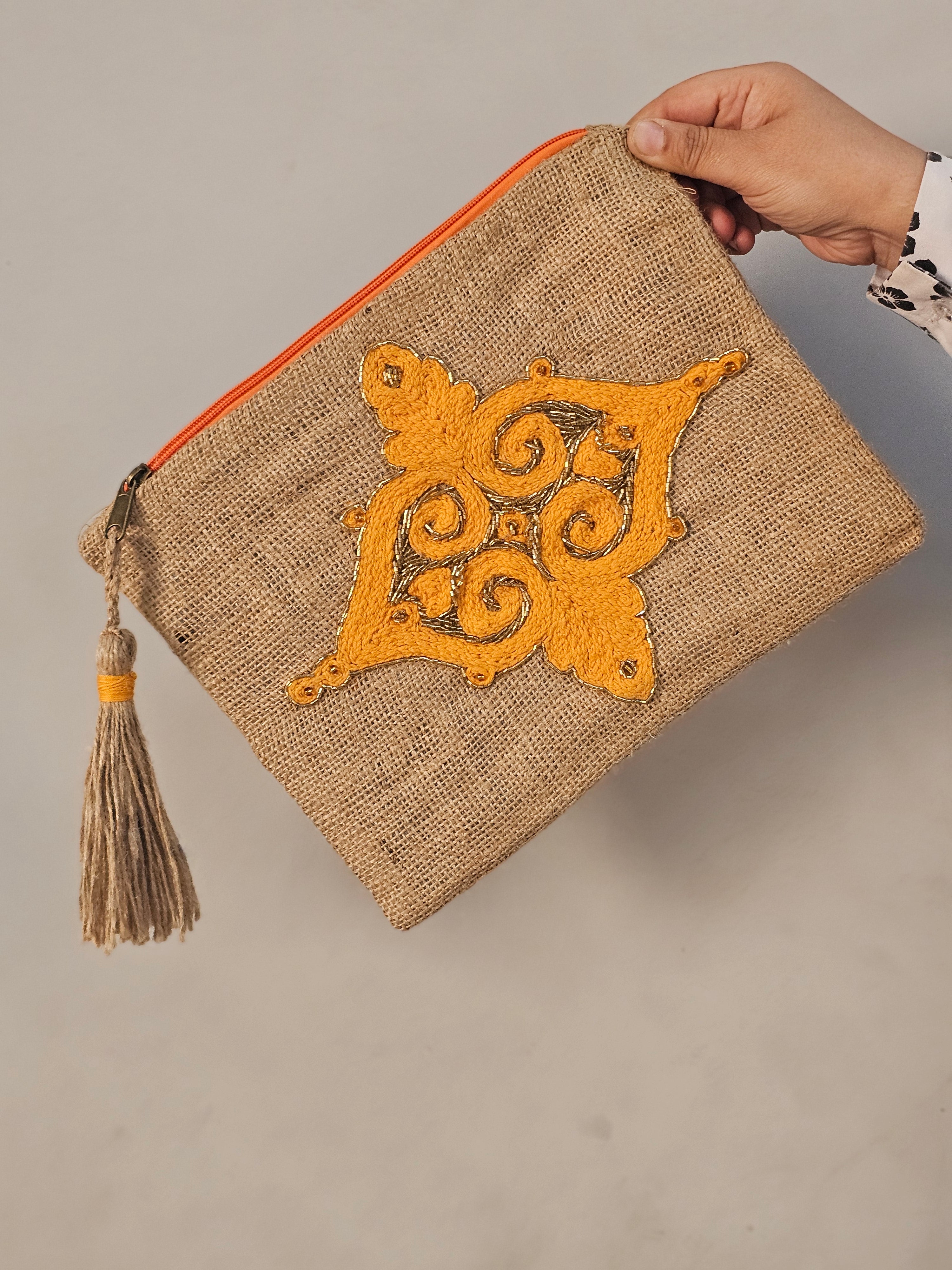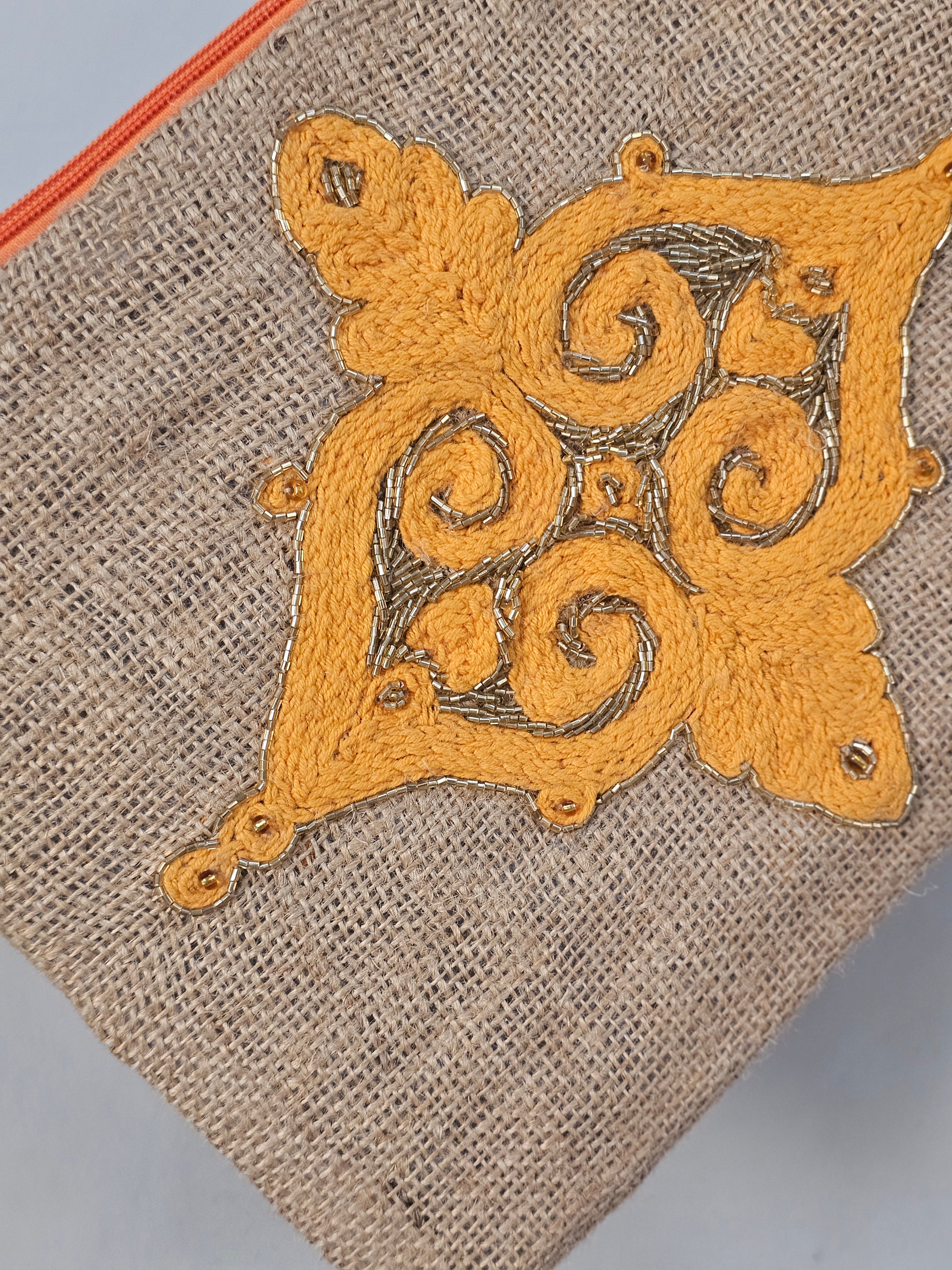 Geometrically Glamorous: Hand-Embroidered Appliqué Burlap Clutch