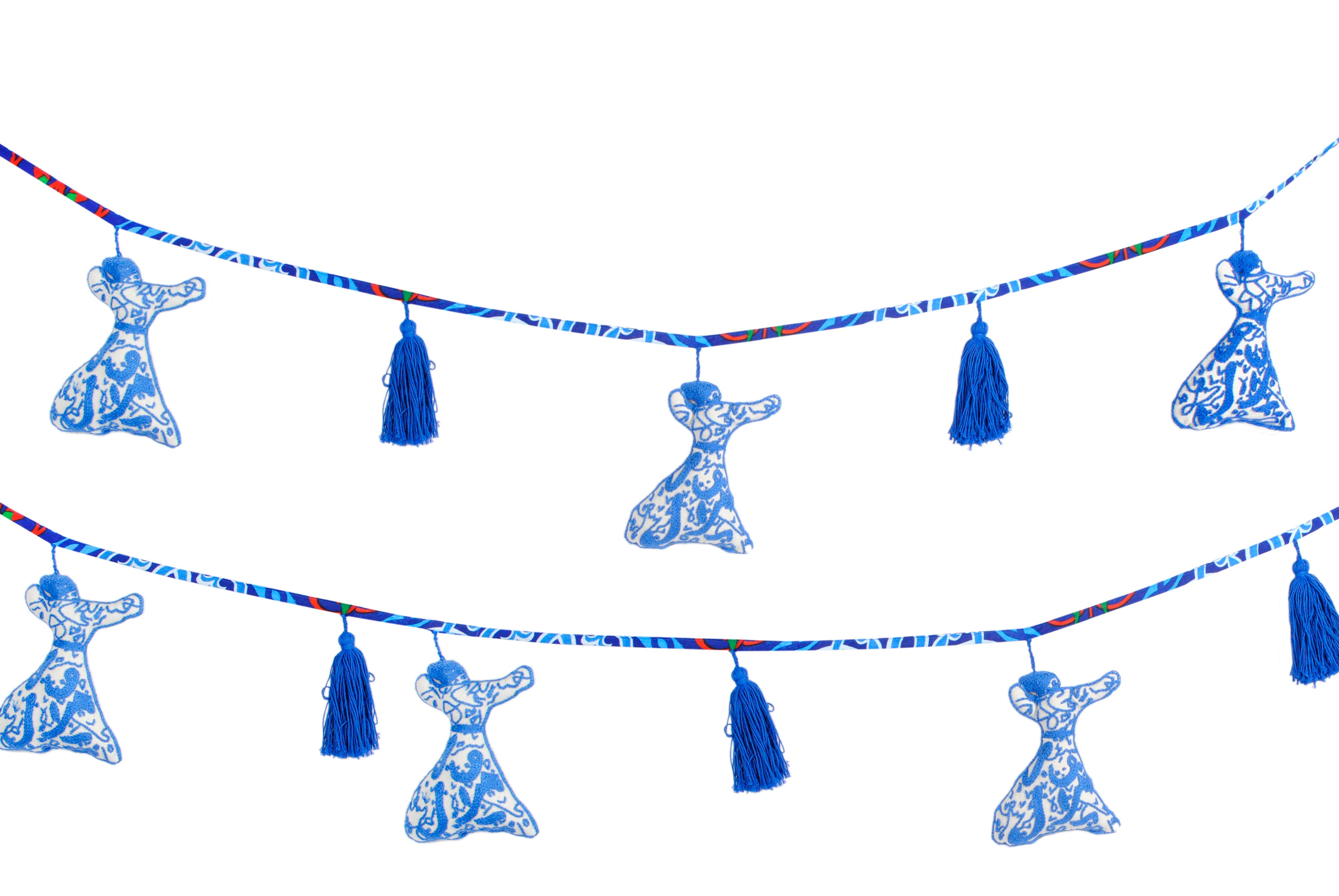 "Embroidered Sufi Beauty: Handmade Ornament Garland in Blue"