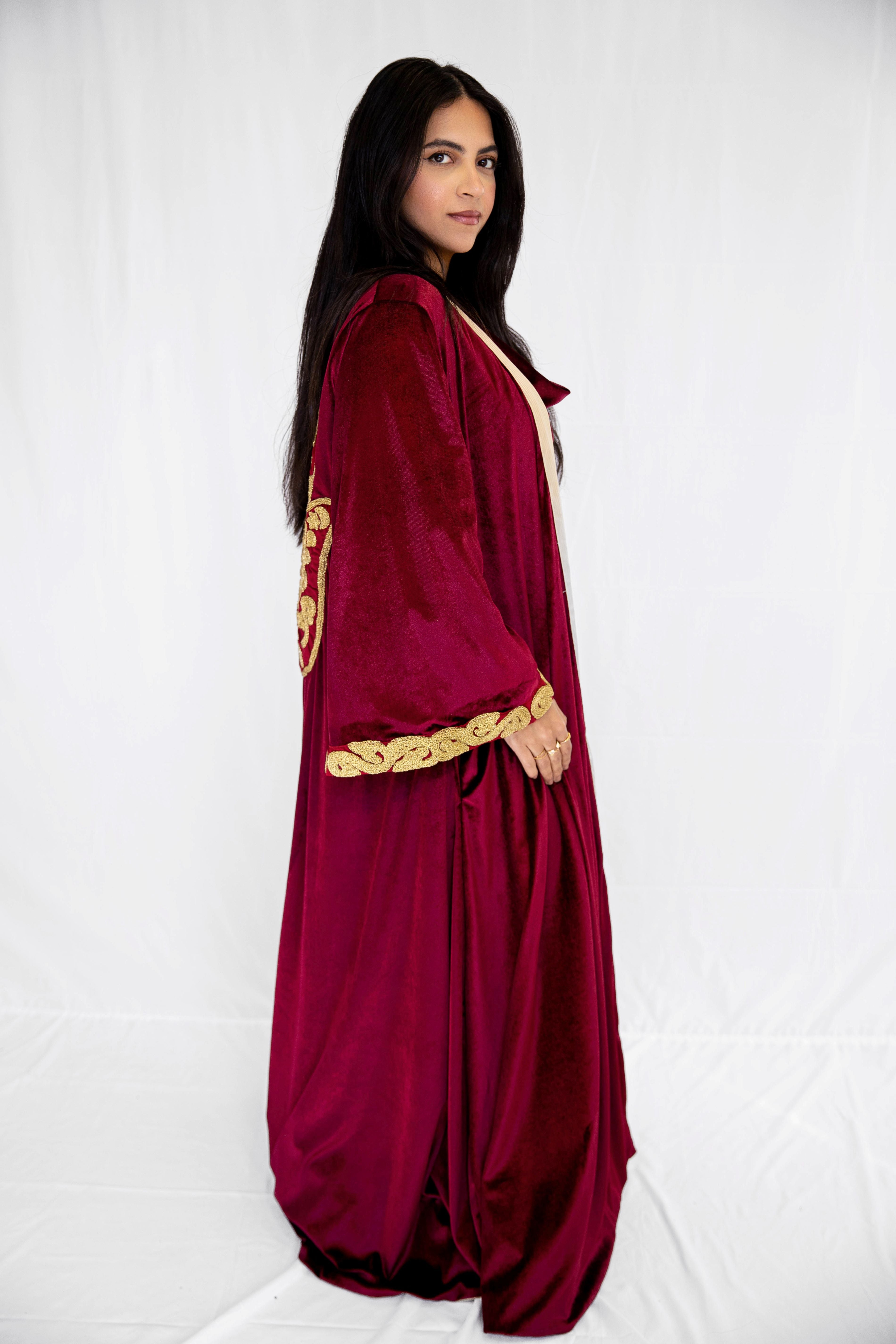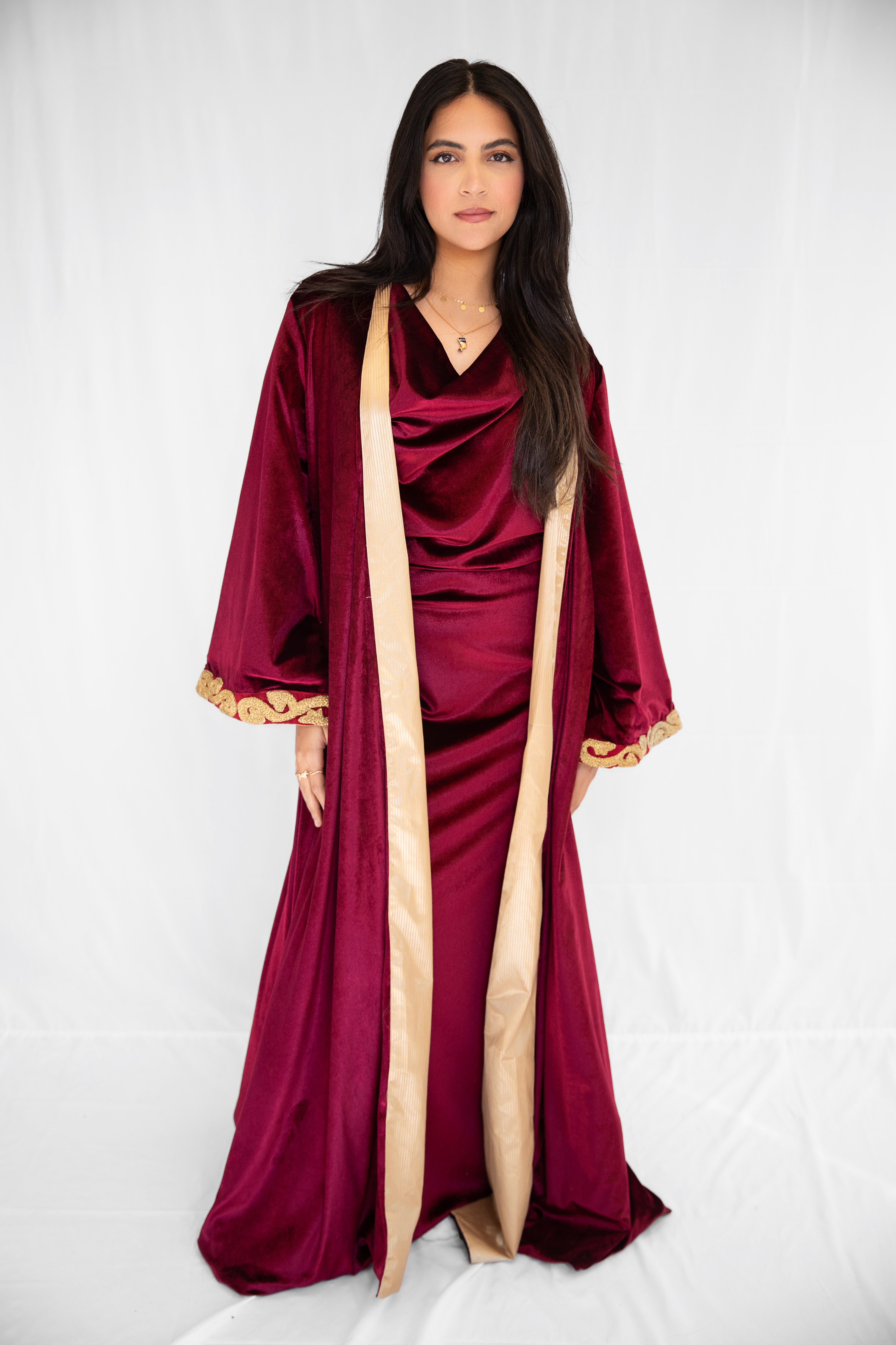 "Golden Hamsa Kaftan" in Burgundy