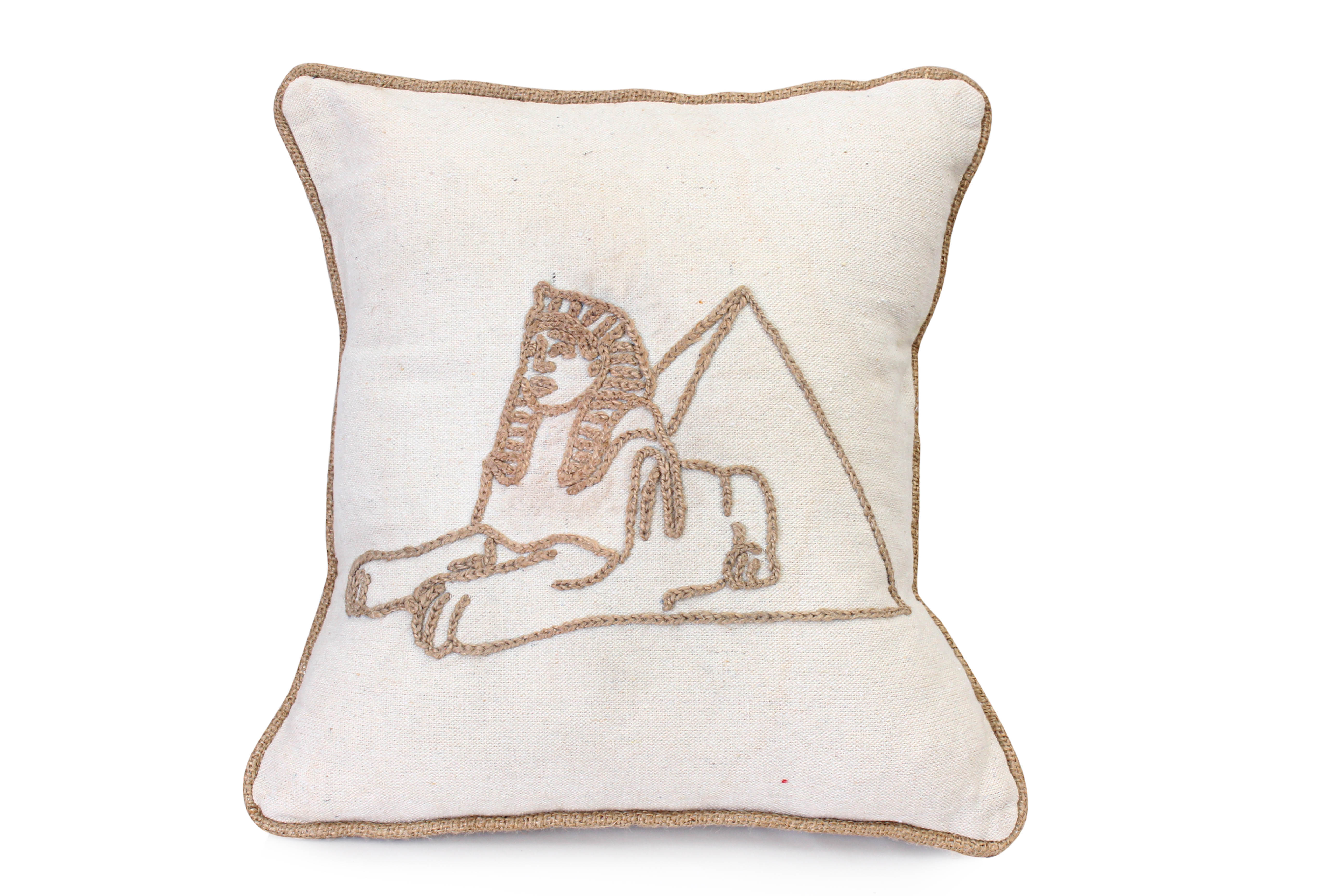 "Guardian of the Pyramids" - Hand Embroidered Ancient Egyptian Cushion