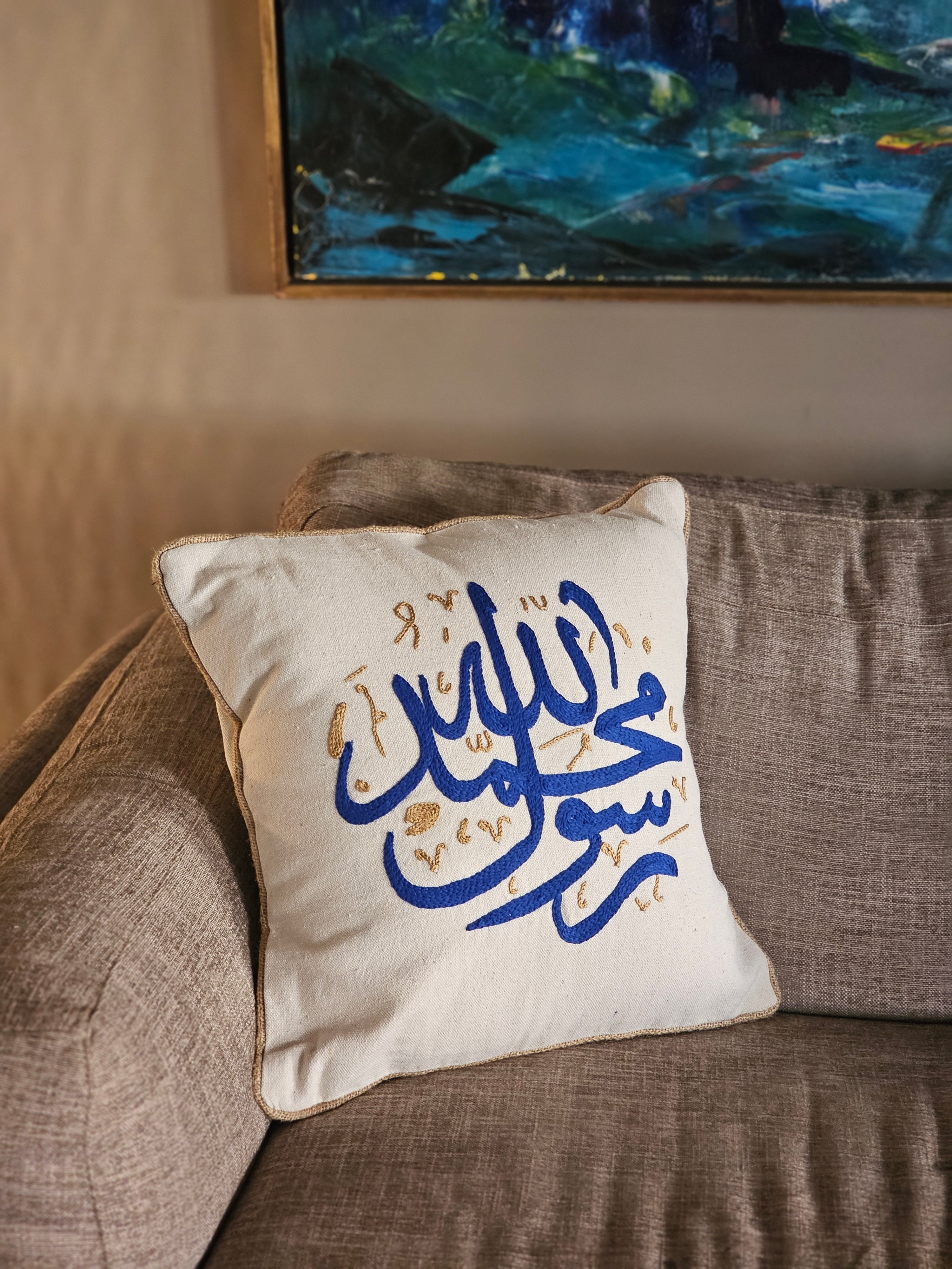 Hand-Embroidered Cushion with Arabic Calligraphy