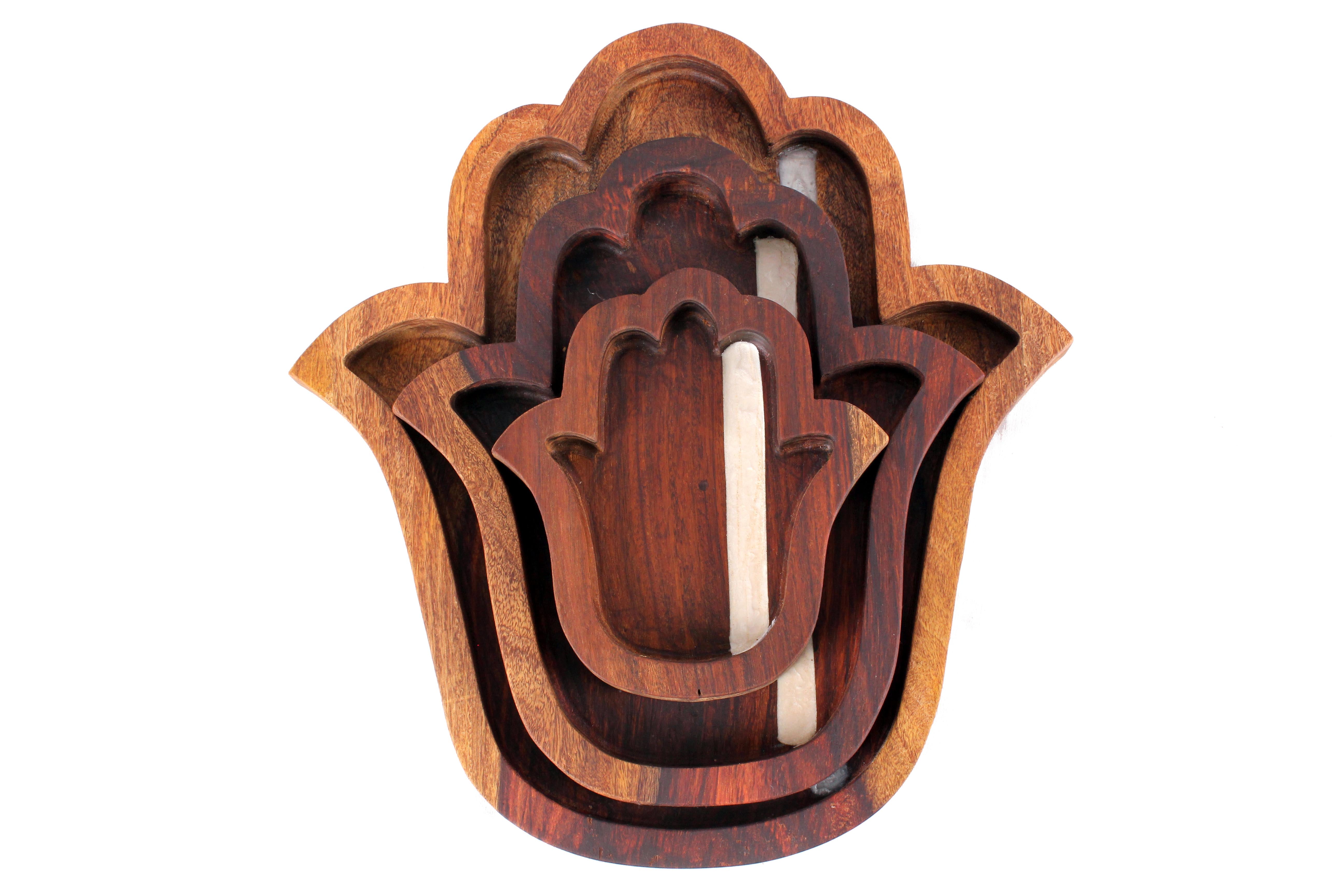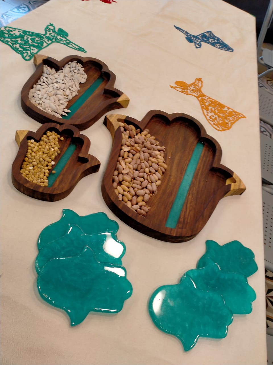Cultural Blend: Kaf Fatma Wooden Plates Set with Epoxy