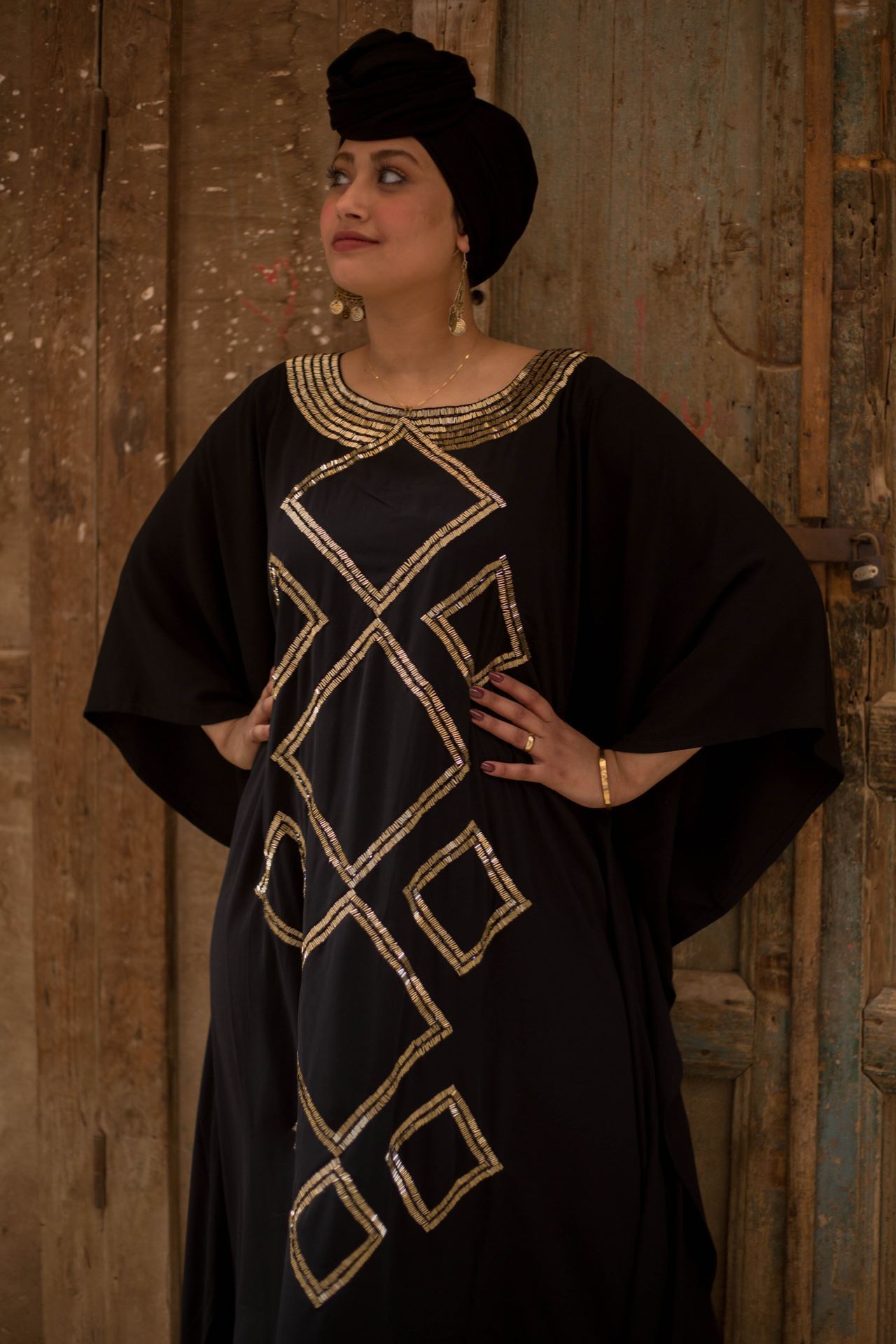 Sparkle in the Spotlight with the Hand-Beaded Abaya in black